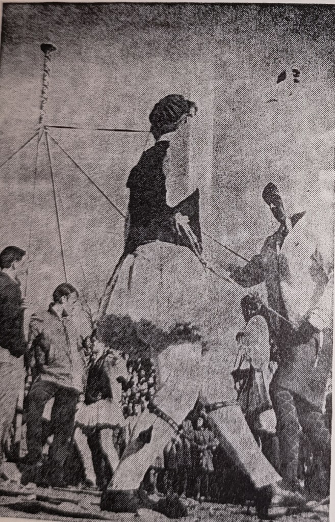 Το Γαϊτανάκι στηνόταν στην πλατεία, μπροστά στο σπίτι του Κώστα Παπαγιάννη. Με το σύνθημα του αρχικαπετάνιου και υπό τους ήχους της μουσικής, οι χορευτές άρχιζαν να πλέκουν τις κορδέλες περνώντας ο ένας κάτω από τον άλλον, δημιουργώντας ένα ωραίο πλέγμα πάνω στο κοντάρι. Μόλις το πλέγμα έφτανε ως τη μέση, χόρευαν αντίστροφα για να το ξεπλέξουν.